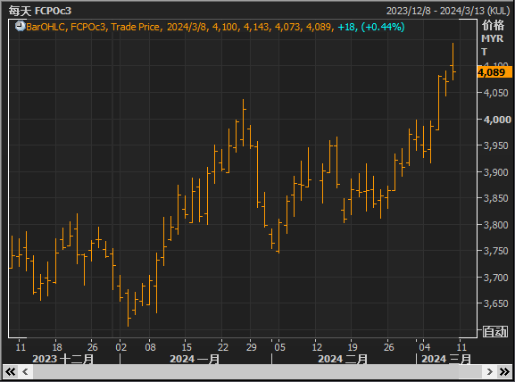 马棕油录得第三周上涨,可能上探4106-4158林吉特