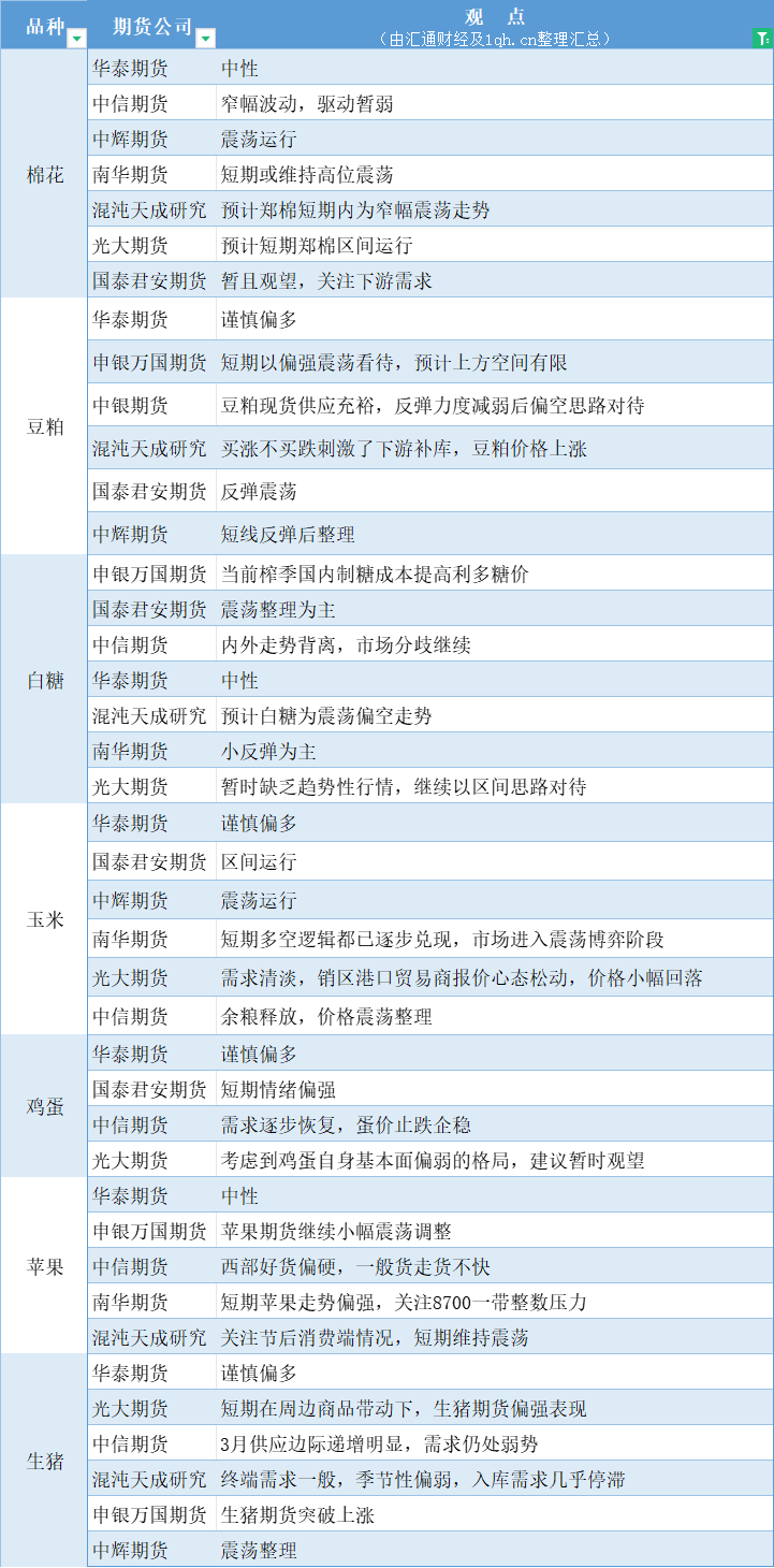 海通期货3月8日晨间策略和交易内参
