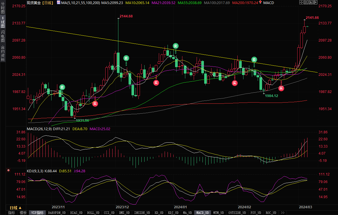 黄金冲高回落,盘中触及2141美元,降息预期转变推动黄金上涨