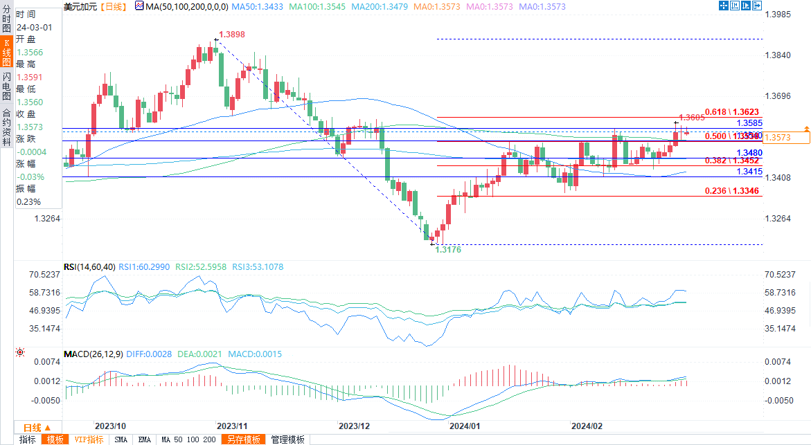 汇通财经APP讯——周五(3月1日)欧盘时段,美元指数小幅下跌。美元兑加元区间震荡交易,最高触及1.3591,最低触及1.3560,盘中报1.3574/75,跌幅0.01%。欧元/美元盘中报1.081...