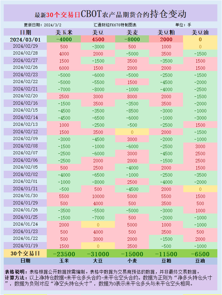CBOT持仓:基金增加美豆净多头,增加美麦美玉米净空头