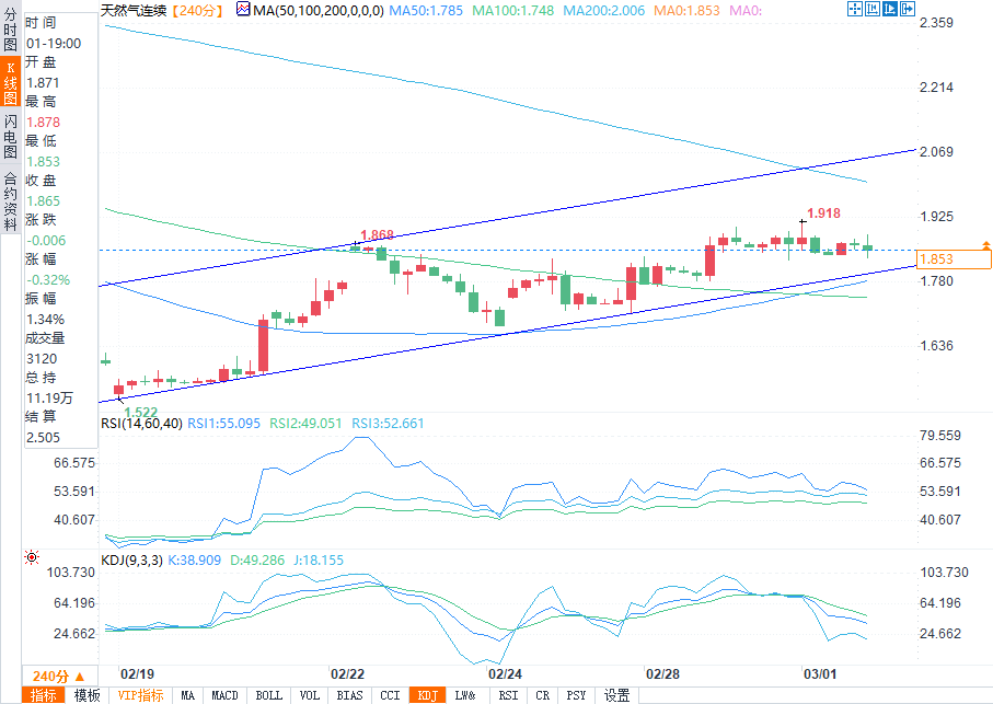 3月1日天然气价格技术分析:通道中部盘整