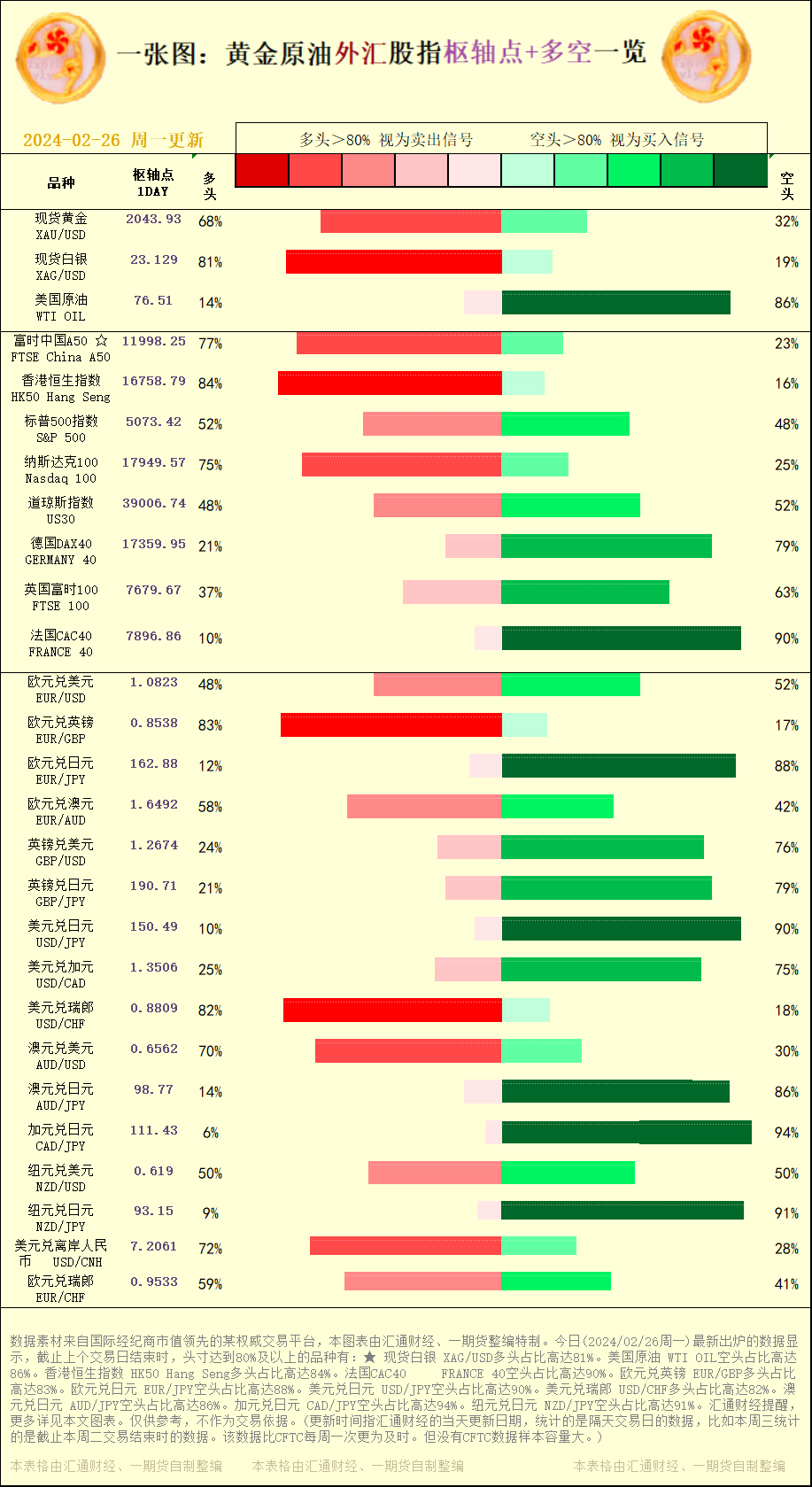 2月27日亚洲时段6大货币对、美元指数及黄金阻力/支撑位