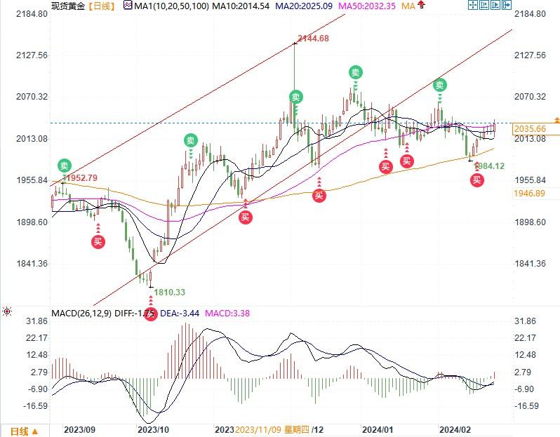 汇通财经APP讯——周五现货黄金小幅走低,日内跌0.13%,交投于2021美元/盎司附近,现货白银日内走低0.41%,交投于22.636美元/盎司附近。周四公布的初请失业金数据下降,且美国2月制造业P...