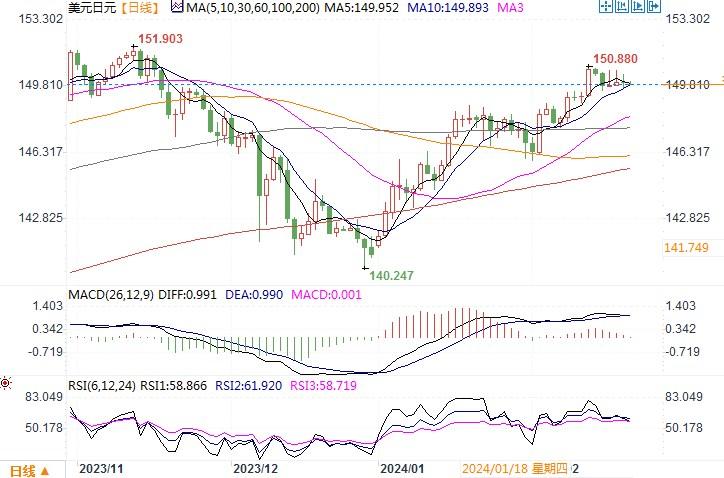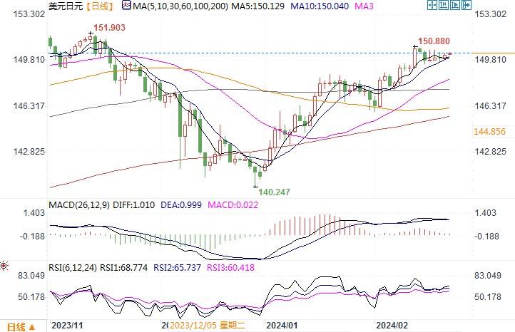 汇通财经APP讯——货币:美元/日元来源:易汇通周三(2月21日),美元指数当日下跌0.04%报104.00,而美元兑日元则上涨0.13%,收盘于150.28。此前美联储1月会议记录基本符合预期,会议...