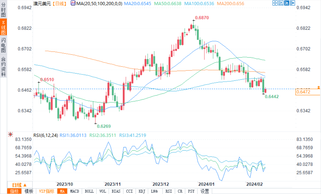 汇通财经APP讯——周三(2月14日),澳元和新西兰元在昨日遭受重创后反弹。截至北京时间16:06,澳元/美元报0.6473,涨幅0.33%。纽元/美元报0.6080,涨幅0.35%。澳元主力报0.6...