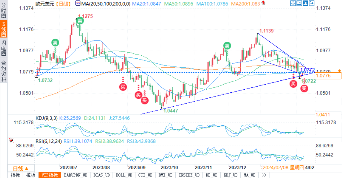 汇通财经APP讯——周四(2月8日)欧盘时段,美元指数基本持平,交投与104.05附近,市场缺乏方向性。因市场等待有关美联储货币政策路径线索的新数据成为新的催化剂。欧元/美元1小时内快速反弹,从1.0...