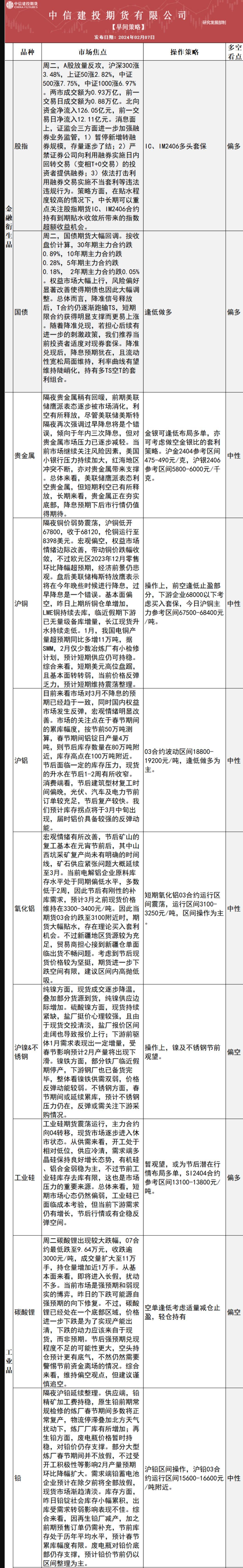 汇通财经APP讯——以下为中信建投期货对股指、国债、贵金属、能源化工、有色金属、黑色建材、农产品等期货的操作建议和提醒。中信建投期货公司授权由“专注国内期货衍生品交易的专业行情分析资讯网站”:【汇通财...