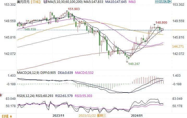 汇通财经APP讯——货币:美元/日元来源:易汇通周四(1月25日),美元周四上涨,衡量美元兑六种主要货币价值的美元指数纽约尾盘上涨0.2%,报103.53。今年迄今,美元已经上涨了约2%。美元兑日元上...