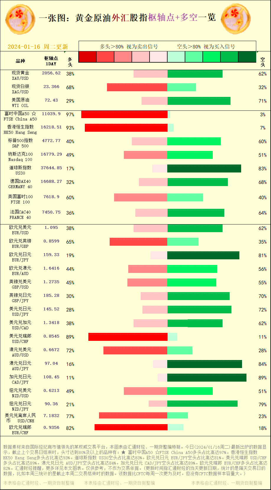 1月17日亚洲时段6大货币对、美元指数及黄金阻力/支撑位