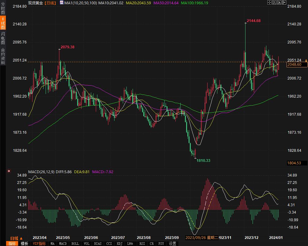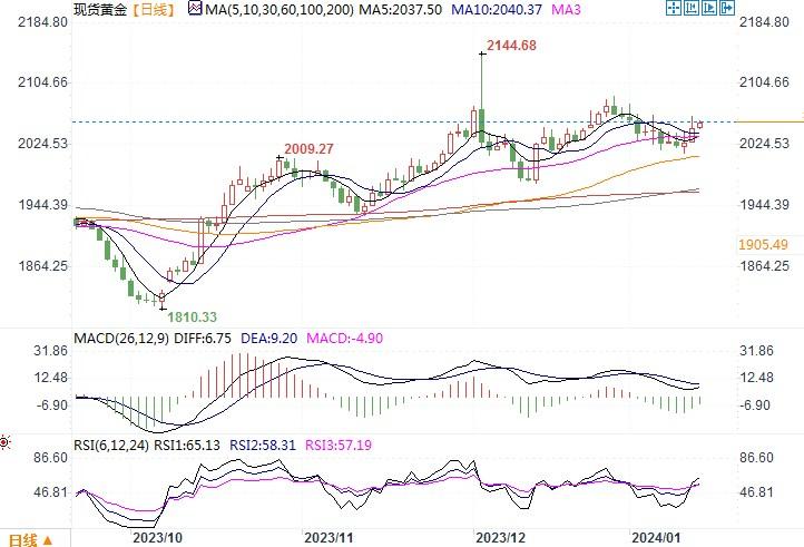 汇通财经APP讯——上周五(1月12日),中东冲突升级刺激避险买盘,同时美国生产者价格指数连续下降推动美联储可能提前降息的押注增加,刺激黄金大幅反弹回升。当日现货金上涨1%,收盘于每盎司2,048.7...
