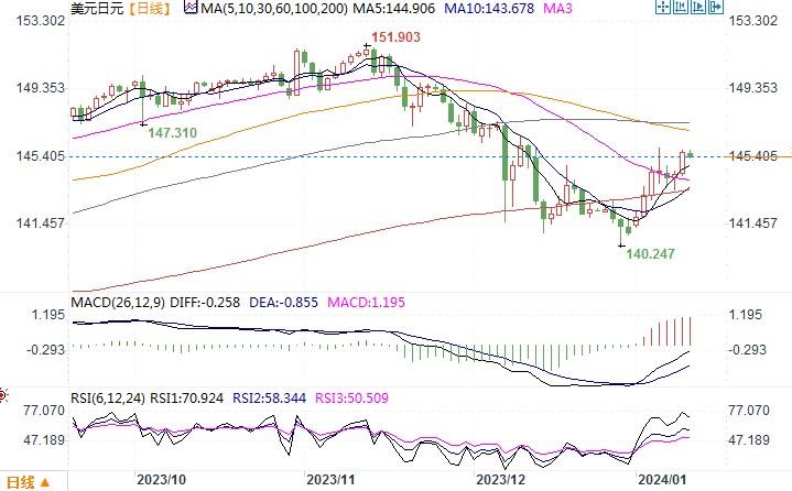 汇通财经APP讯——货币:美元/日元周三(1月10日),美元兑各非美货币走势不一,兑欧元略下跌,而兑日元则上涨0.84%,报145.73。这是因为周初以来日本连续公布的经济数据不佳,其中周三公布的数据...