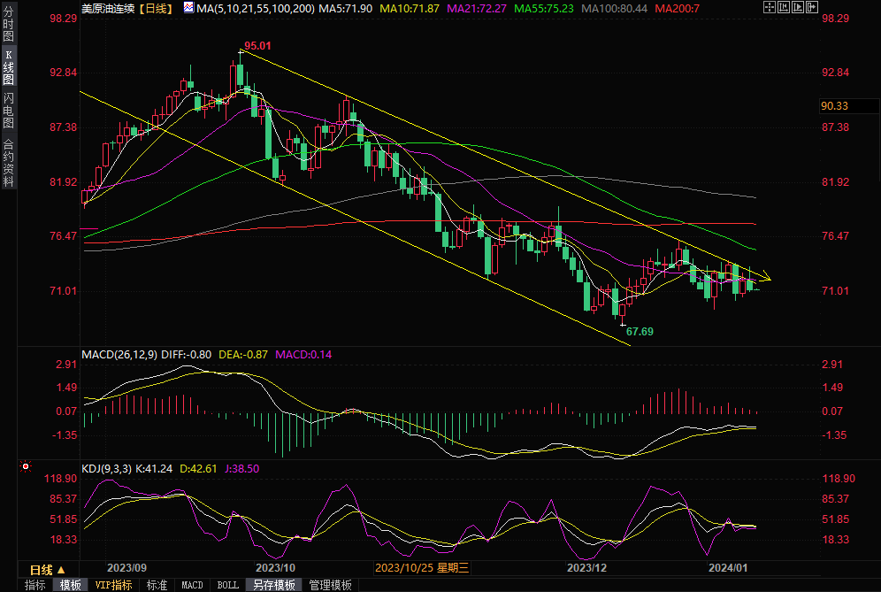 汇通财经APP讯——周三(1月10日)美国原油库存意外增加引发了对最大石油市场需求的担忧,周三油价下跌近1美元/桶,再度受到下跌通道上轨的压制。WTI 2月原油期货收跌0.87美元/桶,跌幅1.20%...