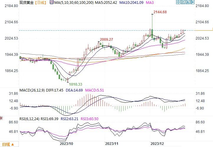 汇通财经APP讯——周二(12月26日),金价周二巩固涨势,连续第三个交易日攀升,国际现货金上涨0.72%,收盘于每盎司2,067.63美元,接近上一交易日触及的逾两周高位2,070.39美元。周二金...