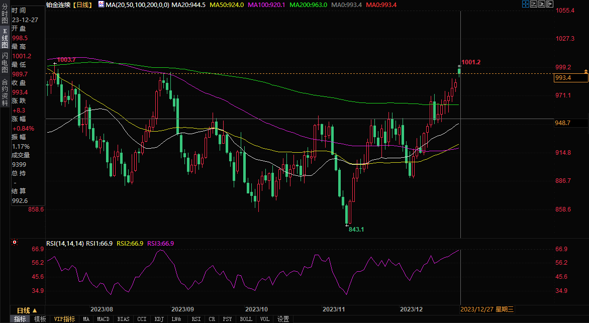 汇通财经APP讯——周二(12月27日),北京时间21:32,铂金连续最新报996.2美元/盎司,涨幅0.06%。现货黄金价格今年创下历史新高,自年初至今涨幅约10%。不过,值得注意的是,黄金的近亲之...