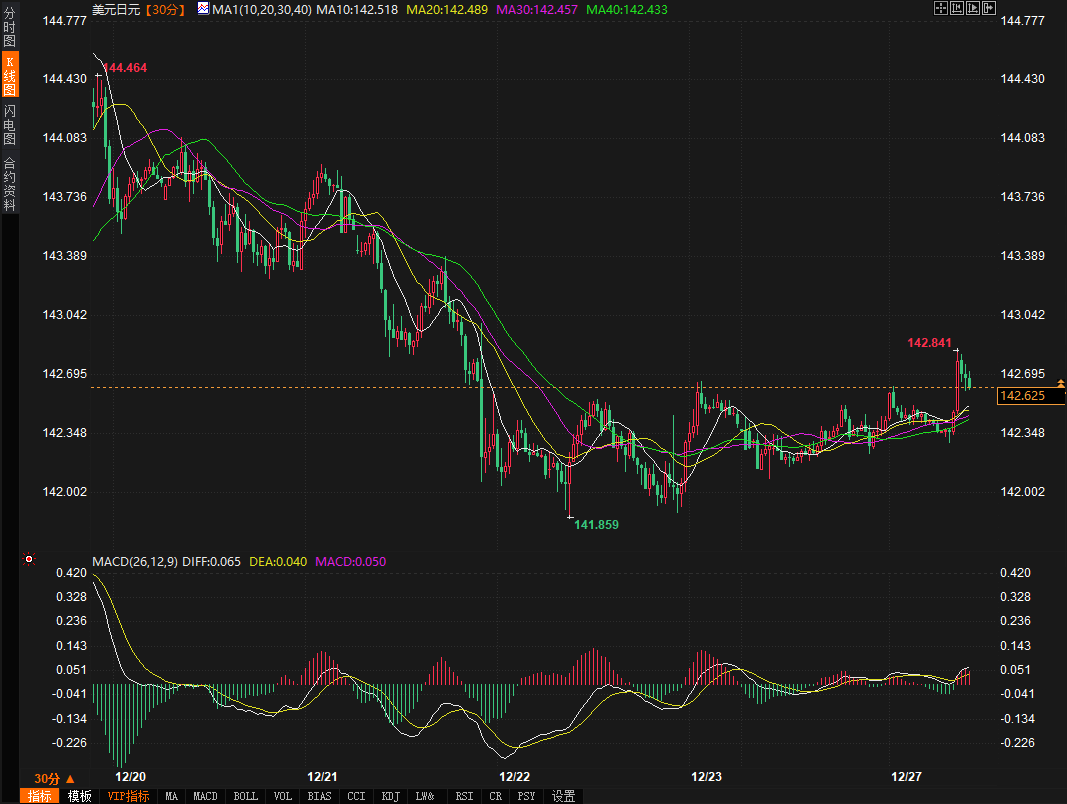汇通财经APP讯——12月27日亚市盘中,美元兑日元短线上涨至142.68,显示出挑战143关口的强劲势头。然而,关于结束负利率的“黑天鹅”信号仍然没有出现。日本央行行长植田和男强调,目前实现价格目标...