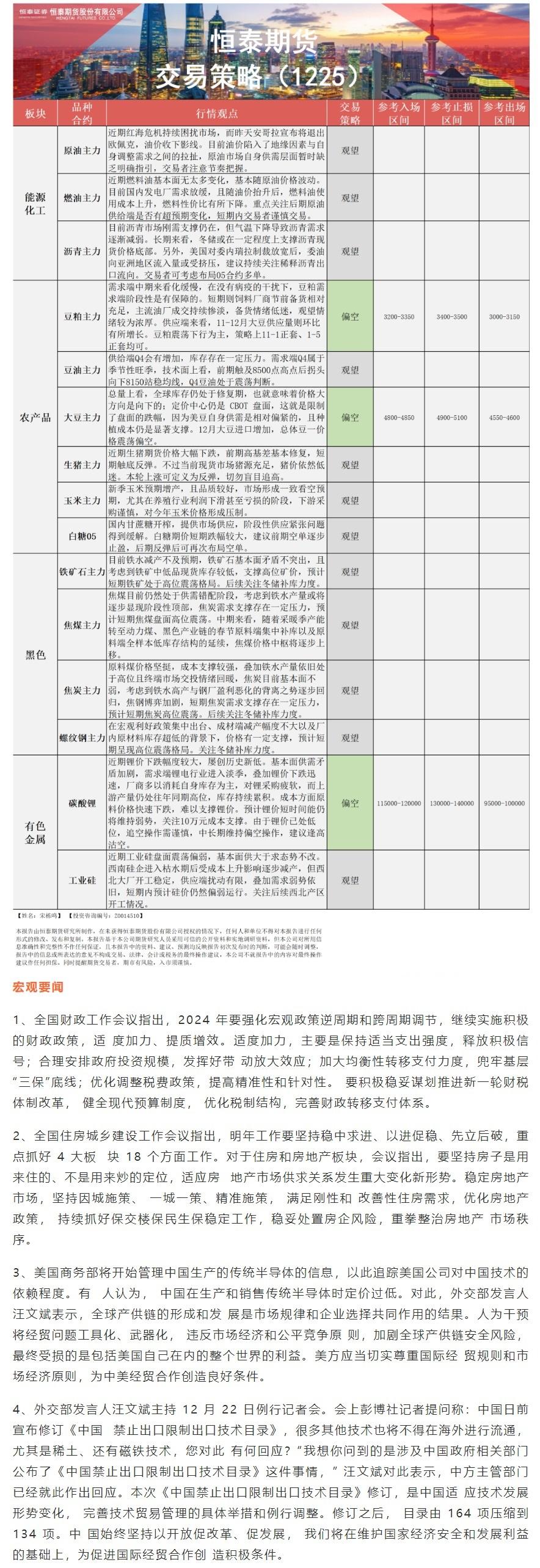 汇通财经APP讯——以下为恒泰期货12月25日对能源板块、黑色板块、农产品板块期货交易提醒和建议。恒泰期货公司授权由“专注国内期货衍生品交易的专业行情分析资讯网站”:【汇通财经 www.fx678.c...