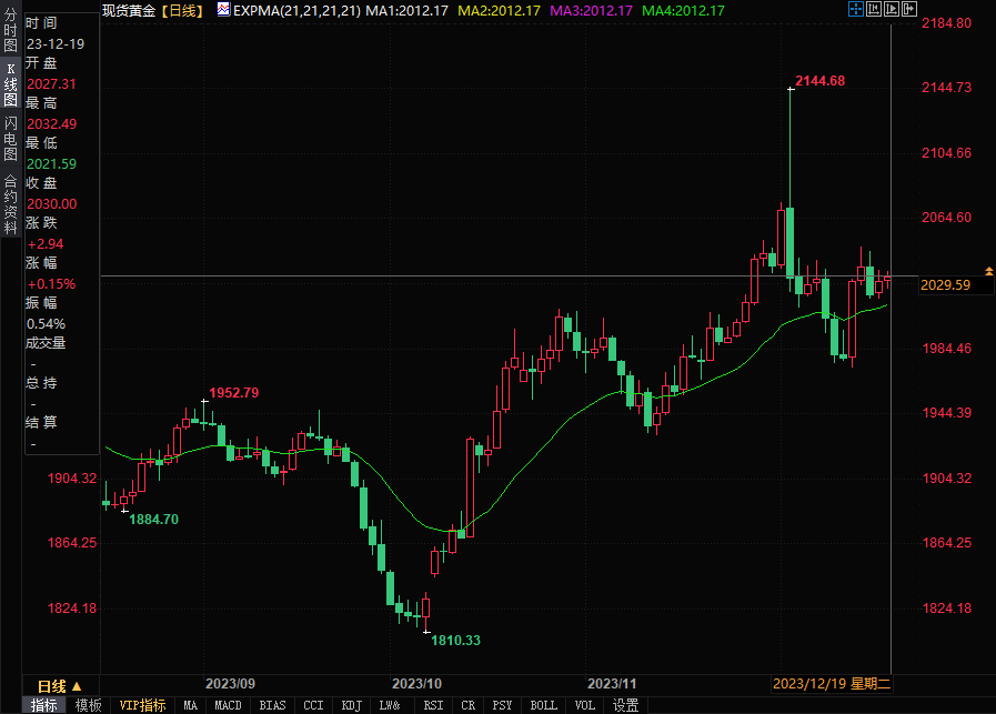 汇通财经APP讯——周二(12月19日),美盘时段,现货黄金窄幅震荡,交投于2029.30美元/盎司,涨幅0.11%。现货黄金价格从1980.00美元反弹后,短期内未能持续向上。一方面原因在于,美联储...