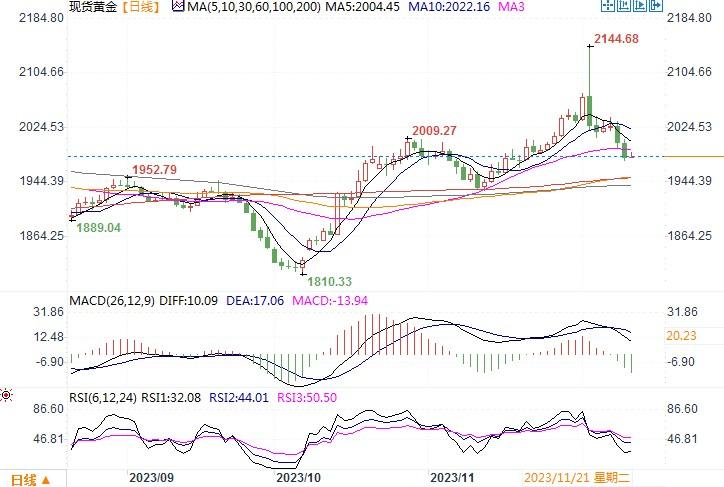 汇通财经APP讯——周一(12月11日),金价收盘于1,980.69美元,下跌1.1%,稍早触及11月20日以来最低1975.70美元。周五较强劲的就业数据,导致对美联储明年降息的预期有些调整,为美元...