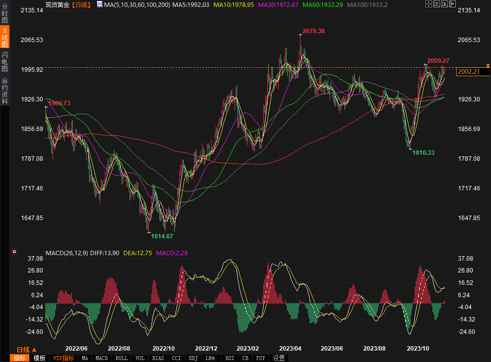 汇通财经APP讯——周五(11月24日),金价周五突破2000美元/盎司,美国市场假期几乎没有交易线索,现在的焦点转向即将到来的商业活动数据,以寻找有关全球最大经济体的更多线索。黄金连续第二周上涨,市...