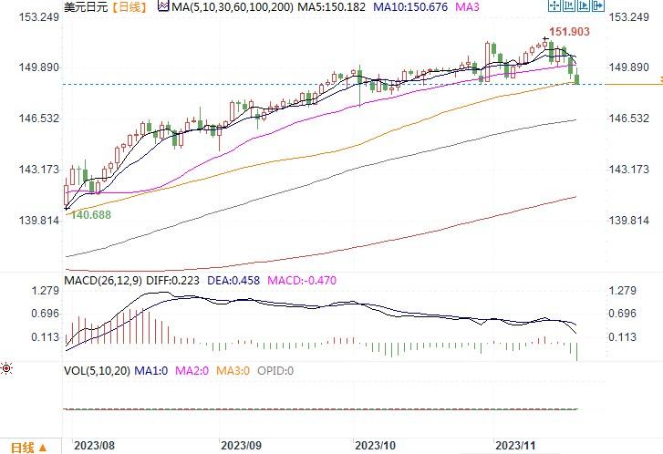 汇通财经APP讯——货币:美元/日元上周五(11月17日),美元继续全线大幅下跌,美元指数上周五当天下跌0.49%,一度低见103.85。美元在过去五天里的跌幅扩大至近1.8%,创7月中以来的最大周线...