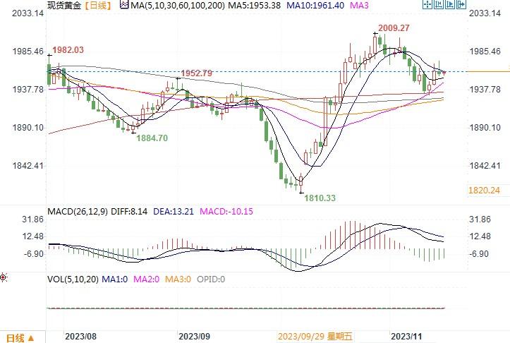 汇通财经APP讯——周三(11月15日), 黄金在一周高点下方企稳,当日略跌0.1%,收盘在1959.09美元/盎司水平。周三美国统计局公布数据称,10月零售销售下滑0.1%。9月读数上修为增长0.9...