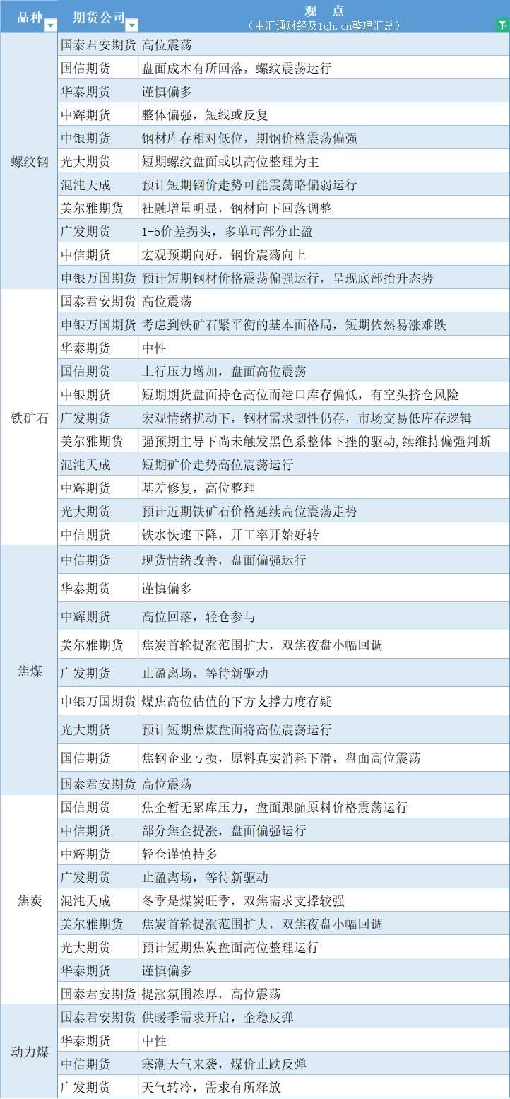 汇通财经APP讯——期货公司观点汇总一张图:11月14日黑色系(螺纹钢、焦煤、焦炭、铁矿石、动力煤等)