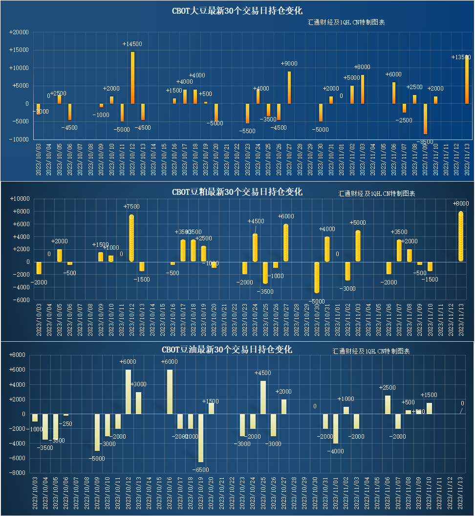 汇通财经APP讯——CBOT谷物期货持仓变动交易商估算的结果显示,大宗商品基金本周一(11月13日)增加玉米、大豆、小麦、豆粕投机性净多头头寸,豆油未平仓多头与未平仓空头相同。最近30个交易日,大宗商...