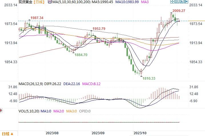 汇通财经APP讯——周三(11月1日),由于美联储维持利率不变,并且对其货币政策几乎没有提供有新意的前瞻性指引,黄金虽有震荡表现,最终收盘在1982.49美元/盎司水平,离近期的高点不远。正如预期,美...