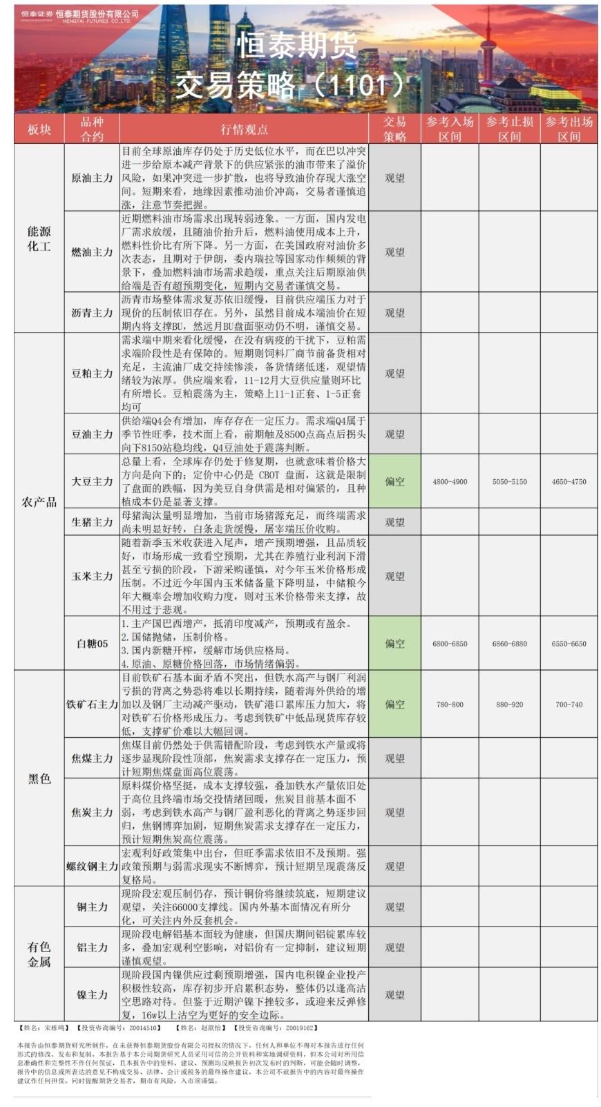 恒泰期货11月1日早盘精要