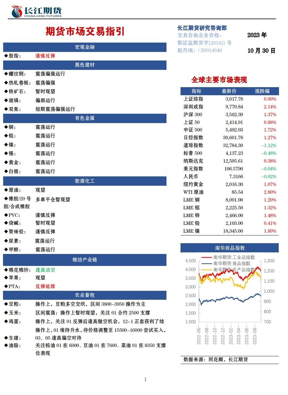 汇通财经APP讯——长江期货10月30日期货市场交易指引,以下是能源化工、黑色建材、有色金属、棉纺、农产品等交易指引。长江期货公司授权文本由“专注期货开户交易及专业行情分析资讯网站”:【一期货 www...