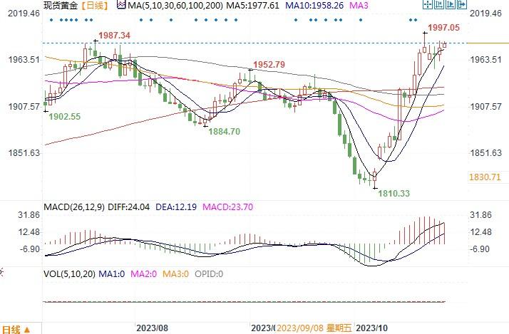 汇通财经APP讯——得益于中东冲突持续,同时投资者期待美国关键经济数据为美联储的政策路径提供进一步线索。现货金收盘于1979.83美元/盎司,上涨0.7%,盘中最高一度交投于上周创下的五个月高点下方1...