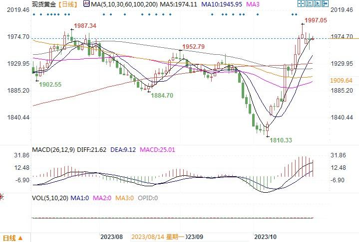 汇通财经APP讯——周二(10月24日),由于美国10月采购经理人数据好于预期,现货黄金出现短暂的跳水行情,金价一度跌破1970美元/盎司关口,最低曾探至1953.10美元/盎司水平。尾市稍有拉升,最...