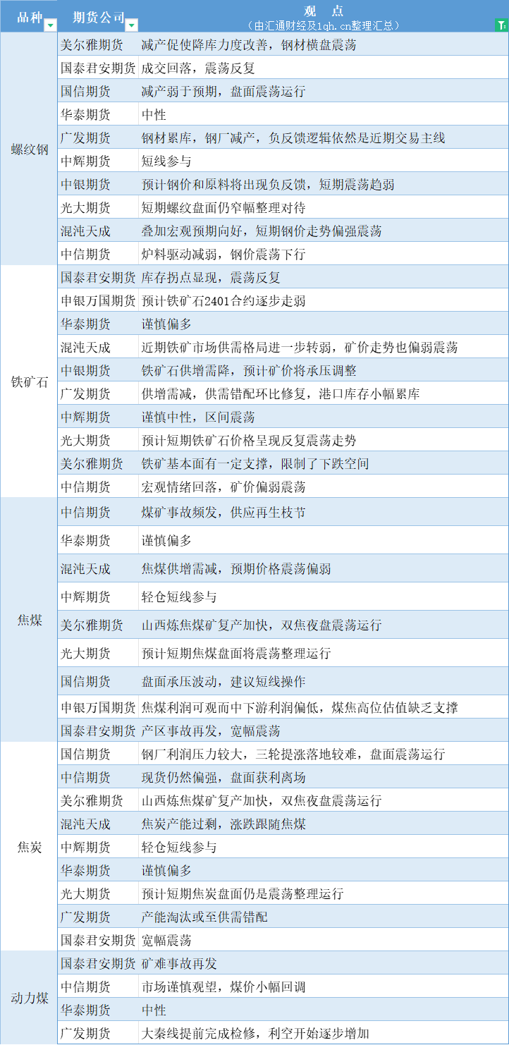 汇通财经APP讯——期货公司观点汇总一张图:10月20日黑色系(螺纹钢、焦煤、焦炭、铁矿石、动力煤等)