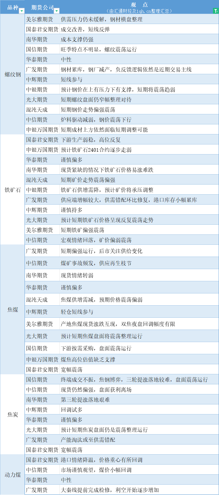期货公司观点汇总一张图:10月18日黑色系(螺纹钢、焦煤、焦炭、铁矿石、动力煤等)