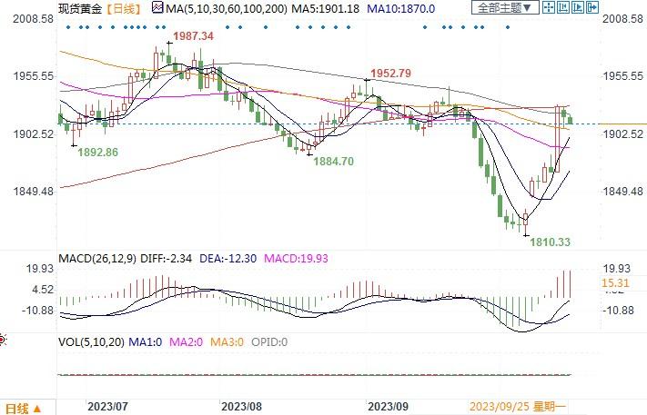 汇通财经APP讯——周一(10月16日)进入欧市盘中,全球市场仍处于紧张状态,巴以局势升级而没有明显的解决方案,黄金在上周五暴涨后出现获利回吐小幅回落,但仍守住1900美元关口之上。市场本周继续追踪中...