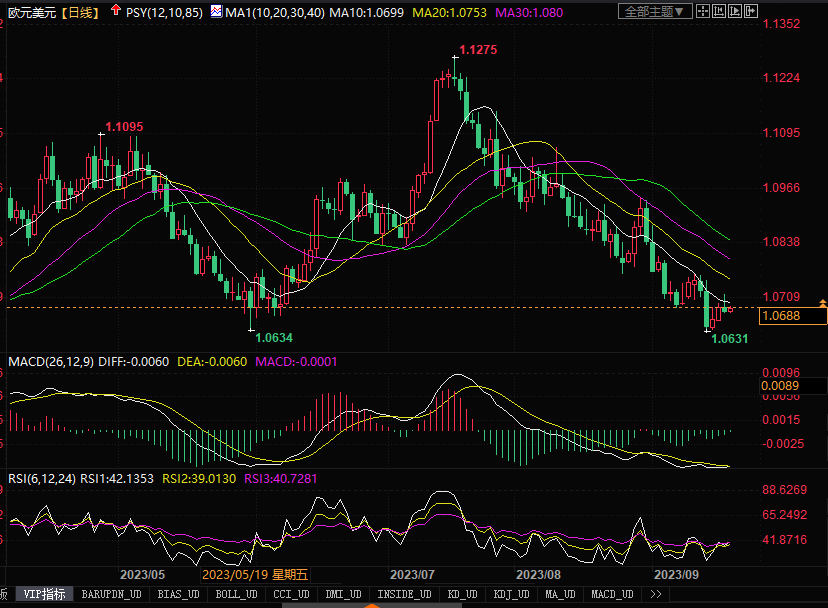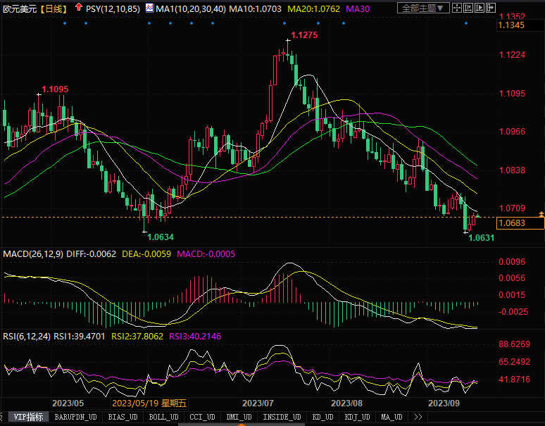 汇通财经APP讯——货币:欧元/美元阻力位2:1.0760阻力位1:1.0700即期价格:1.0684支持位1:1.0640支持位2:1.0600周二(9月19日),欧元下跌0.1%,报1.0680美...