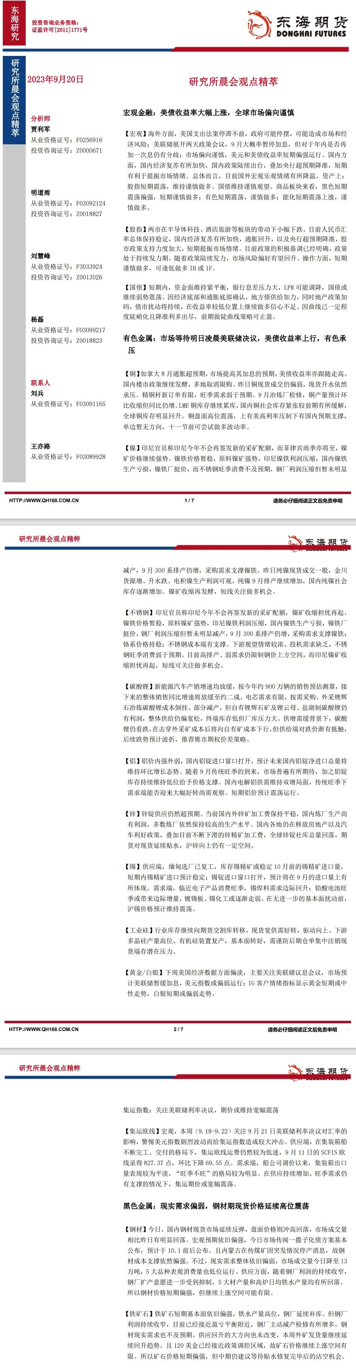 汇通财经APP讯——广发期货发布9月20日早知道,建议铝低位多单持有,小止损;碳酸锂维持偏空思路;钢材偏强震荡走势,铁矿石预计盘面高位震荡,关注910一线压力;焦炭短期预计仍偏强运行;原油高位震荡思路...