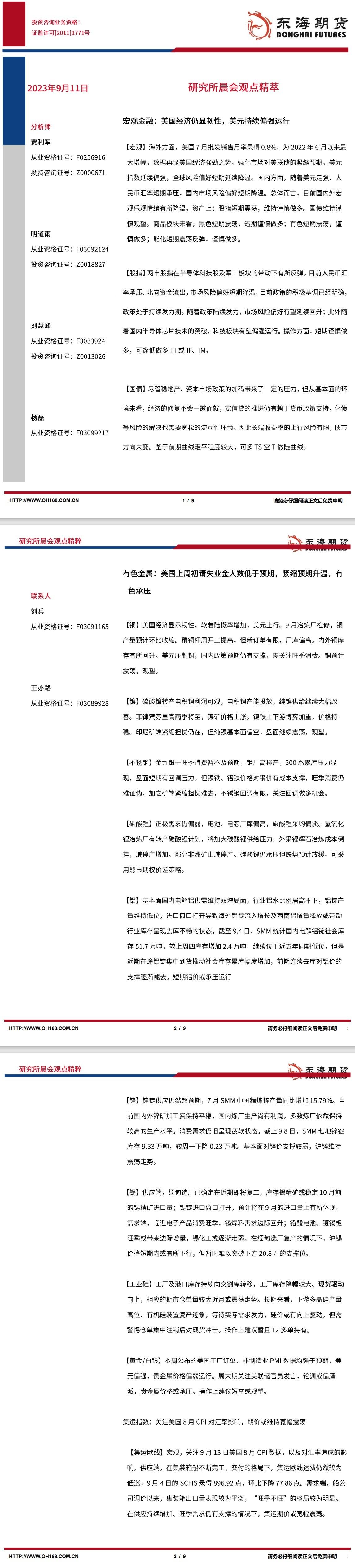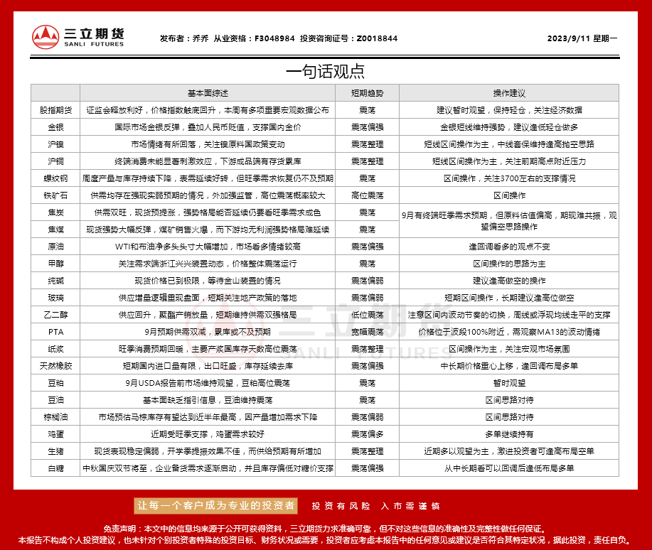 三立期货9月11日沪金、沪银、原油、有色金属等期货操作建议