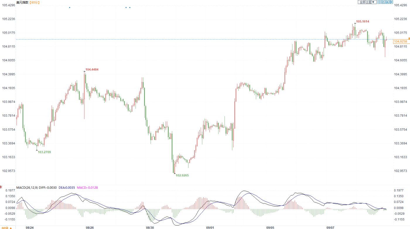汇通财经APP讯——周五9月8日,由于美国经济数据强劲,令美联储激进加息周期的结束受到质疑,美元迎来九年来最长的单周上涨势头。截止发稿,衡量美元兑主要货币的美元指数下跌0.05%,至105,但与前一交...