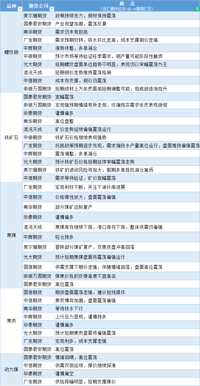 汇通财经APP讯——期货公司观点汇总一张图:9月7日黑色系(螺纹钢、焦煤、焦炭、铁矿石、动力煤等)