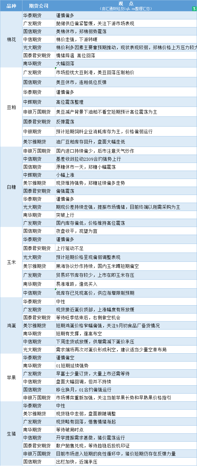 长安期货9月6日早间看盘
