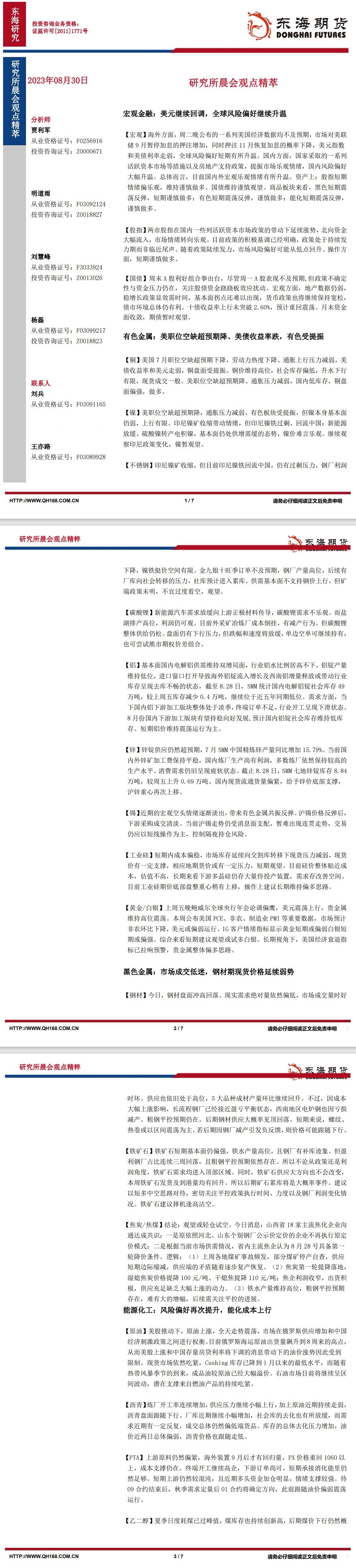汇通财经APP讯——三立期货早报指出,美国职位空缺不及预期,美元指数跳水,金银价格偏强,金银可谨慎看多,警偶今晚小非农超预期可能。API库存大降,油价企稳反弹;原油短期偏多的思路对待,关注EIA,库存...