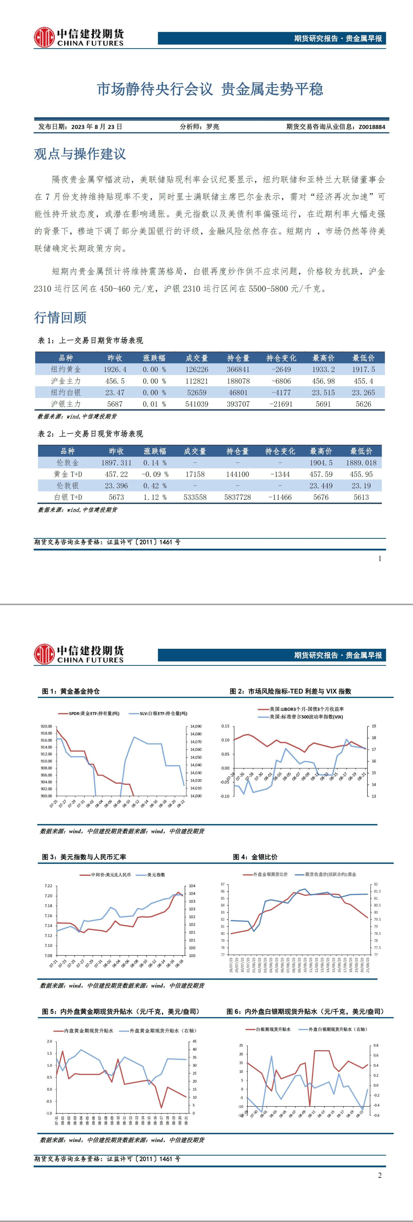 中信建投期货8月23日贵金属早报:市场静待央行会议,贵金属走势平稳