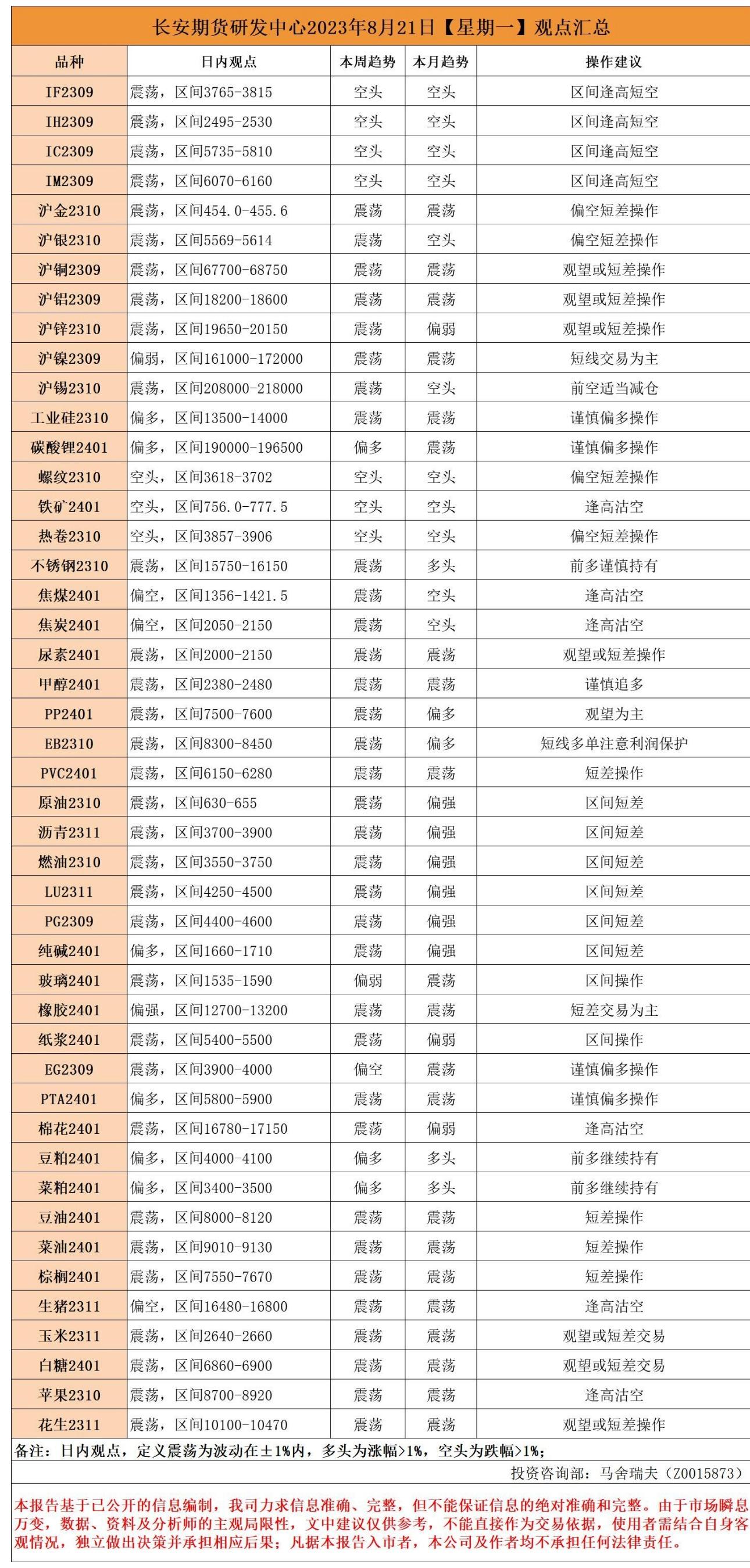 汇通财经APP讯——沪金、沪银:偏空短差操作。铁矿:逢高沽空。甲醇:谨慎追多。原油、沥青:区间短差。玉米、白糖:观望或短差交易。长安期货公司授权文本由“专注期货开户交易及专业行情分析资讯网站”:【一期...