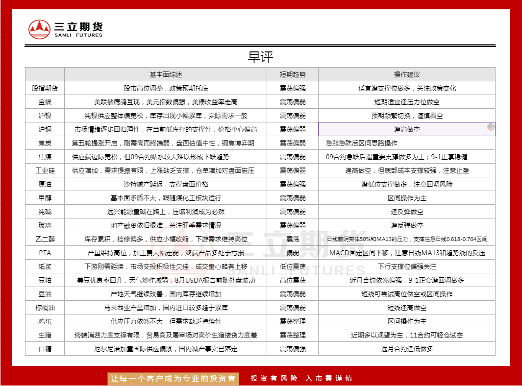 汇通财经APP讯——三立期货早报指出,美联储鹰鸽互现,美元指数偏强,美债收益率走高,金银短期适宜逢压力位做空。沪铜市场情绪逐步回归理性,在当前低库存的支撑性,价格重心偏高,逢高做空。三立期货授权文本由...