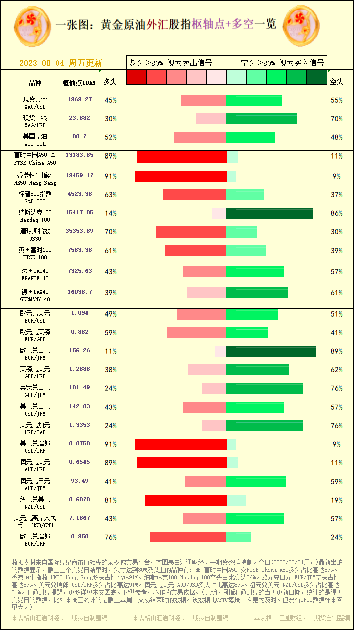 汇通财经APP讯——汇通财经据CFTC官网持仓数据:截至8月1日当周,COMEX黄金期货投机性净多头头寸减少16954手至99337手;美原油期货投机性净多头头寸增加2854手至180595手。贵金属...