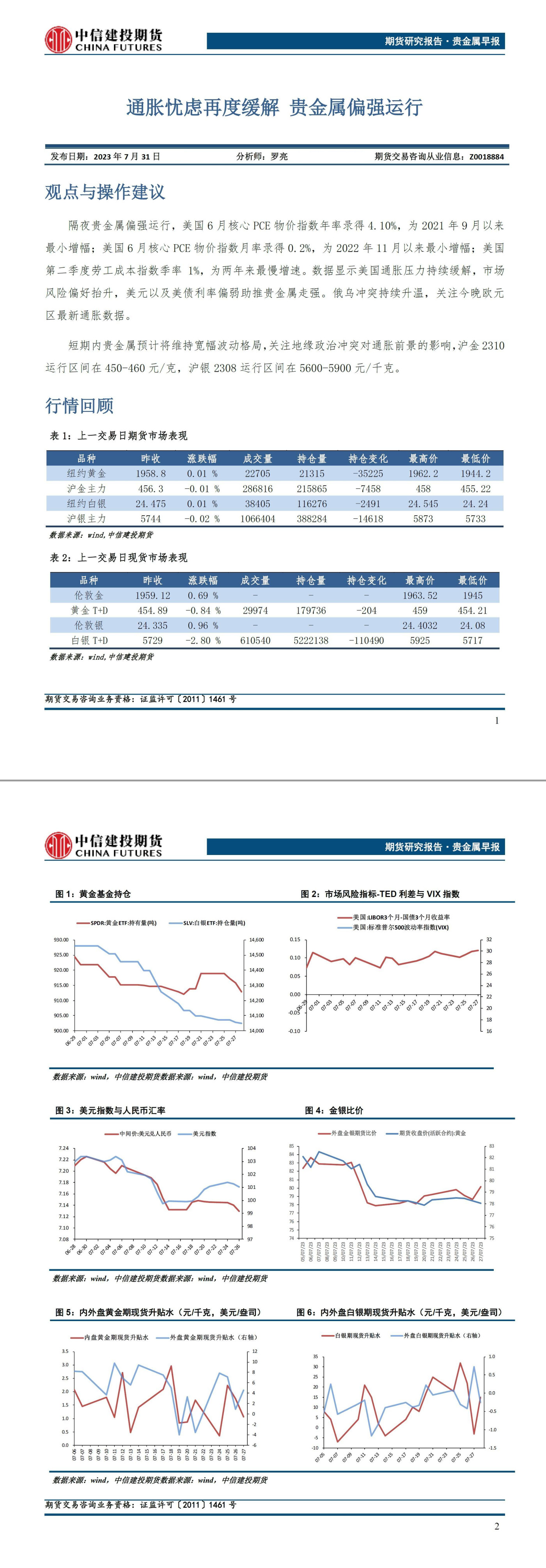 中信建投期货7月31日贵金属早报:通胀忧虑再度缓解,贵金属偏强运行