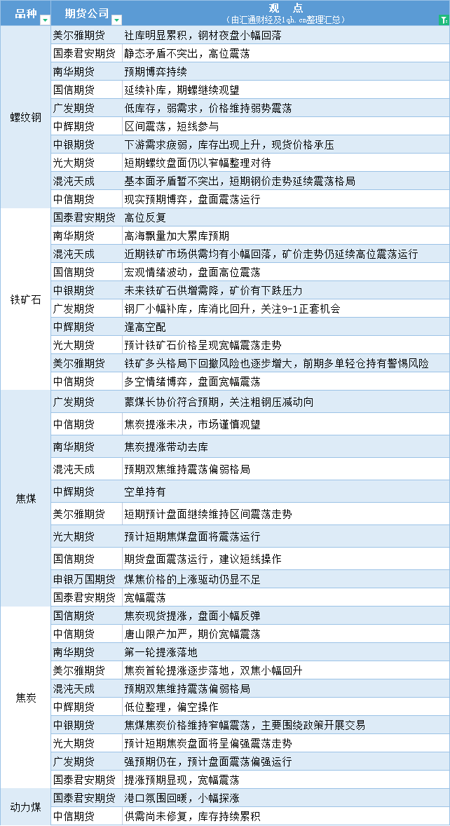 汇通财经APP讯——期货公司观点汇总一张图:7月7日黑色系(螺纹钢、焦煤、焦炭、铁矿石、动力煤等)