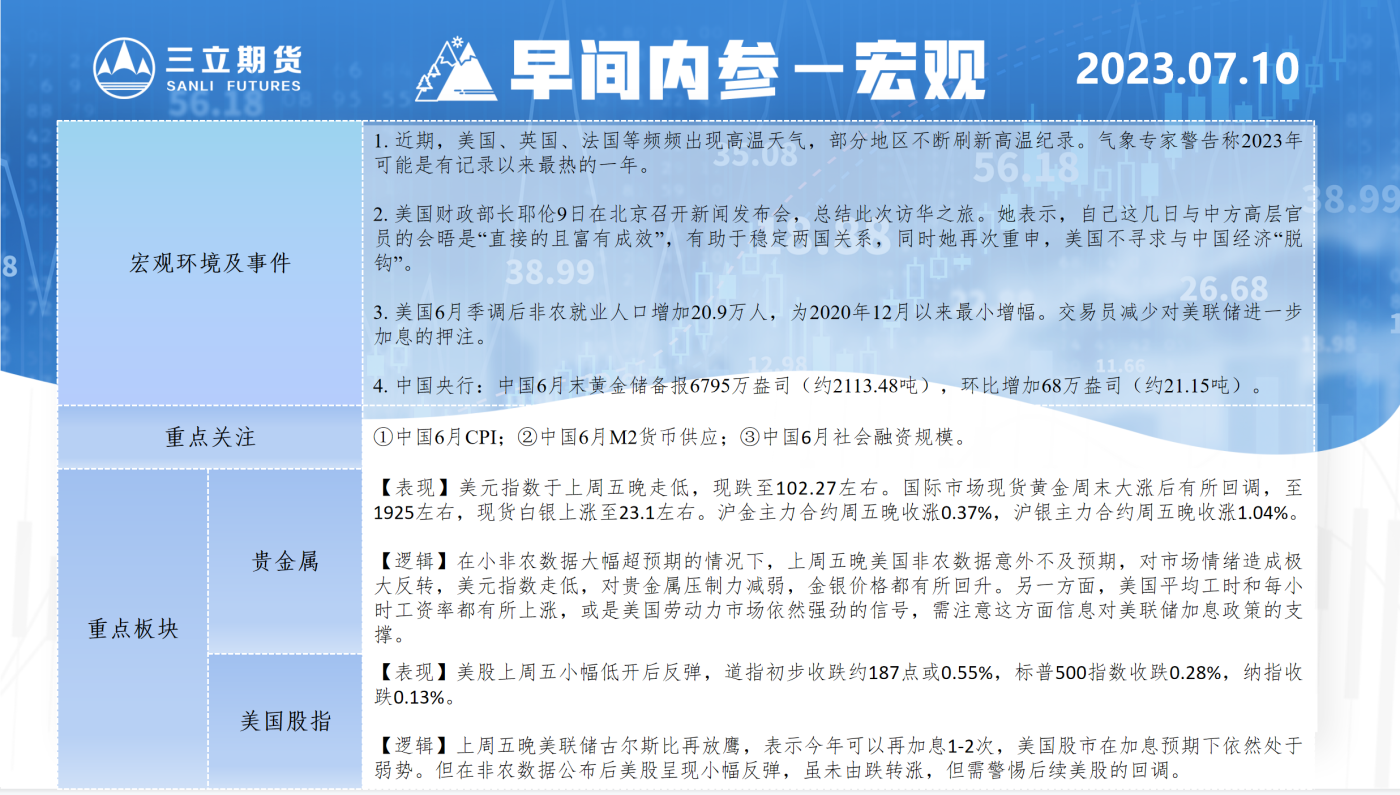 7月10日财经早餐:聚焦美联储经济褐皮书,关注油市三大月报
